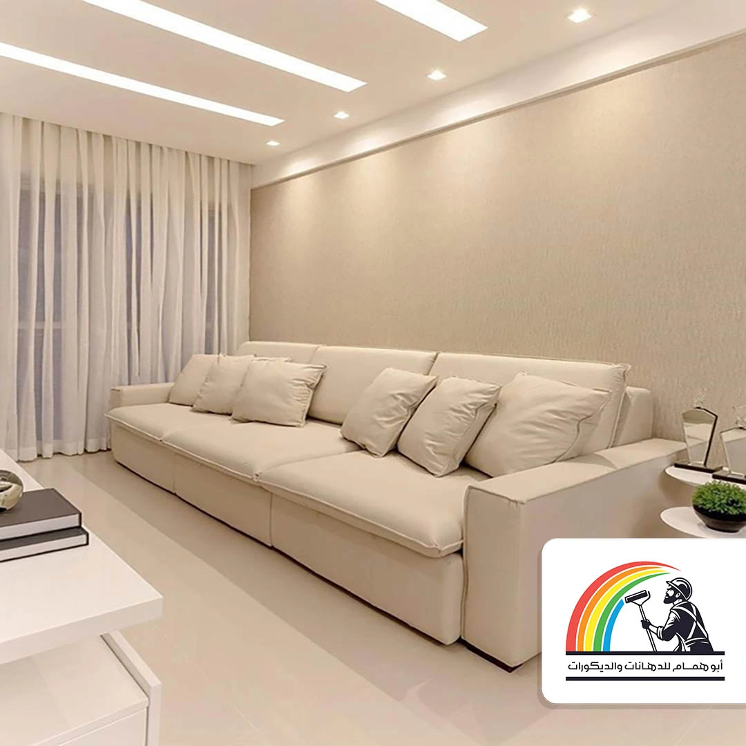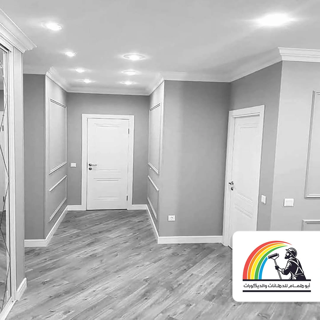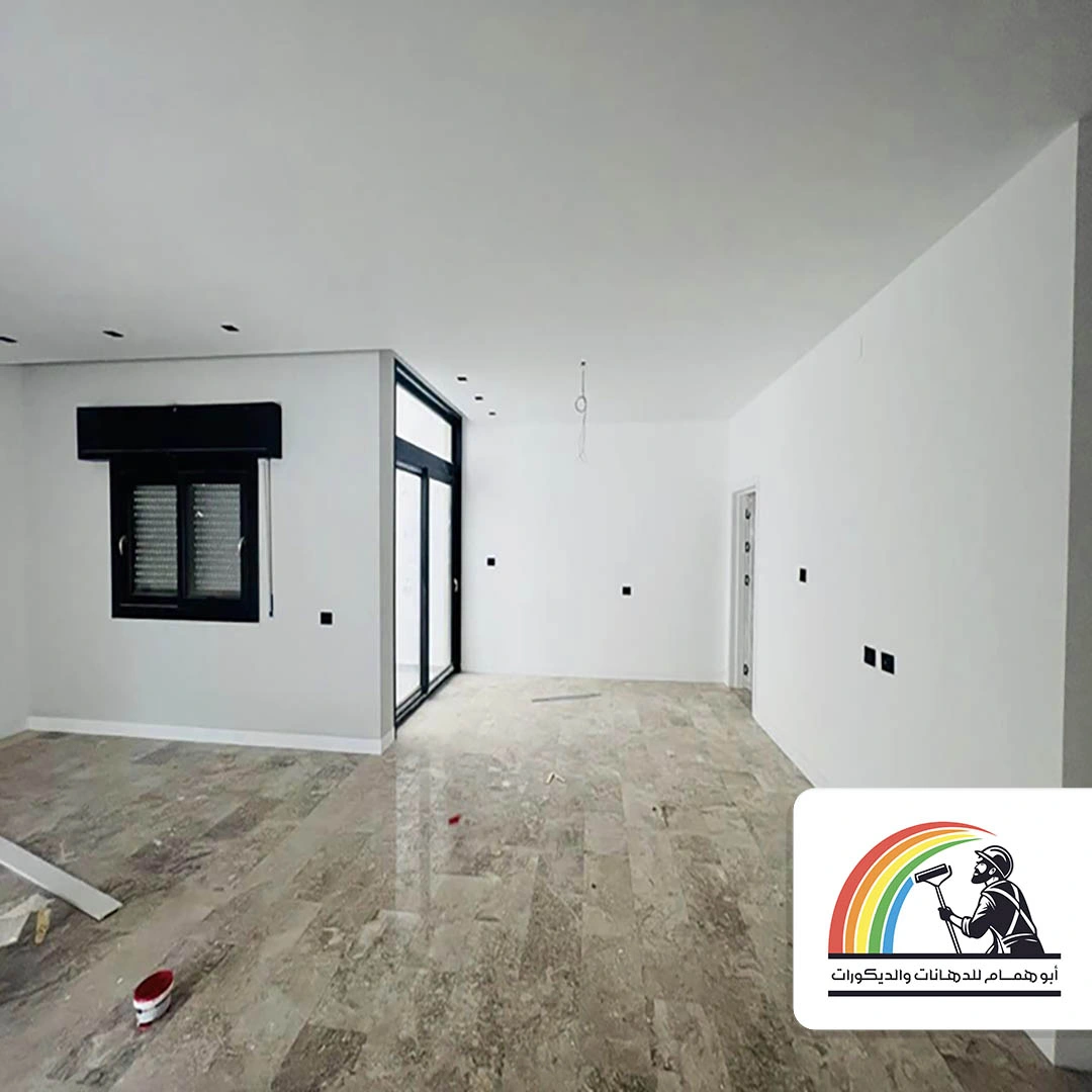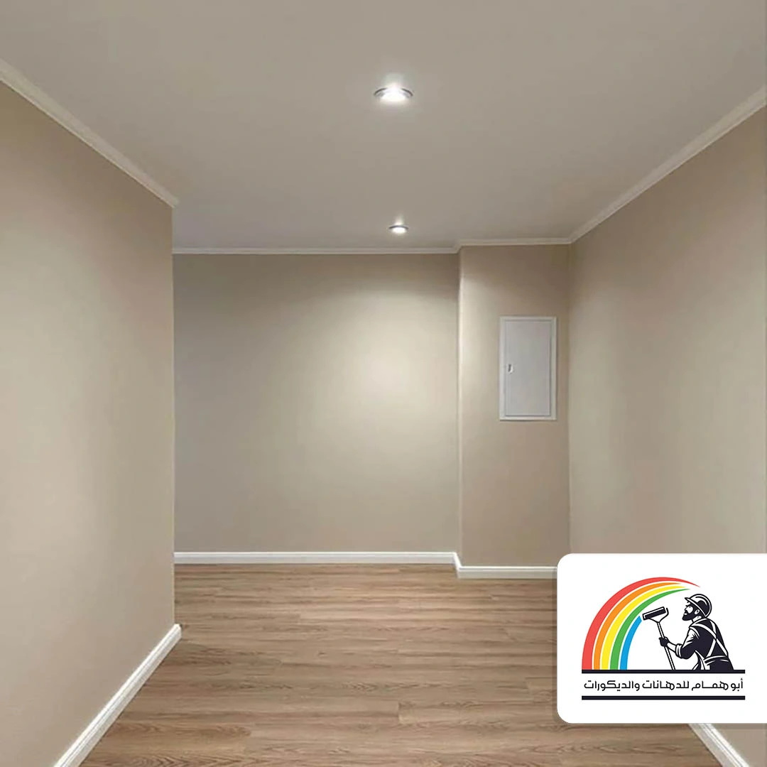 يتم اختيار نوع الدهان وفق طبيعة الغرفة ومستوى الإضاءة لضمان تناسق الألوان وتحقيق التأثير العصري المطلوب مع مقاومة عالية للرطوبة والعوامل الجوية.